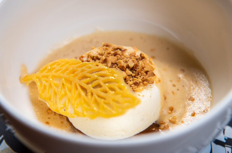 Cod loin confit in butter, fregola aglio olio and cauliflower puree