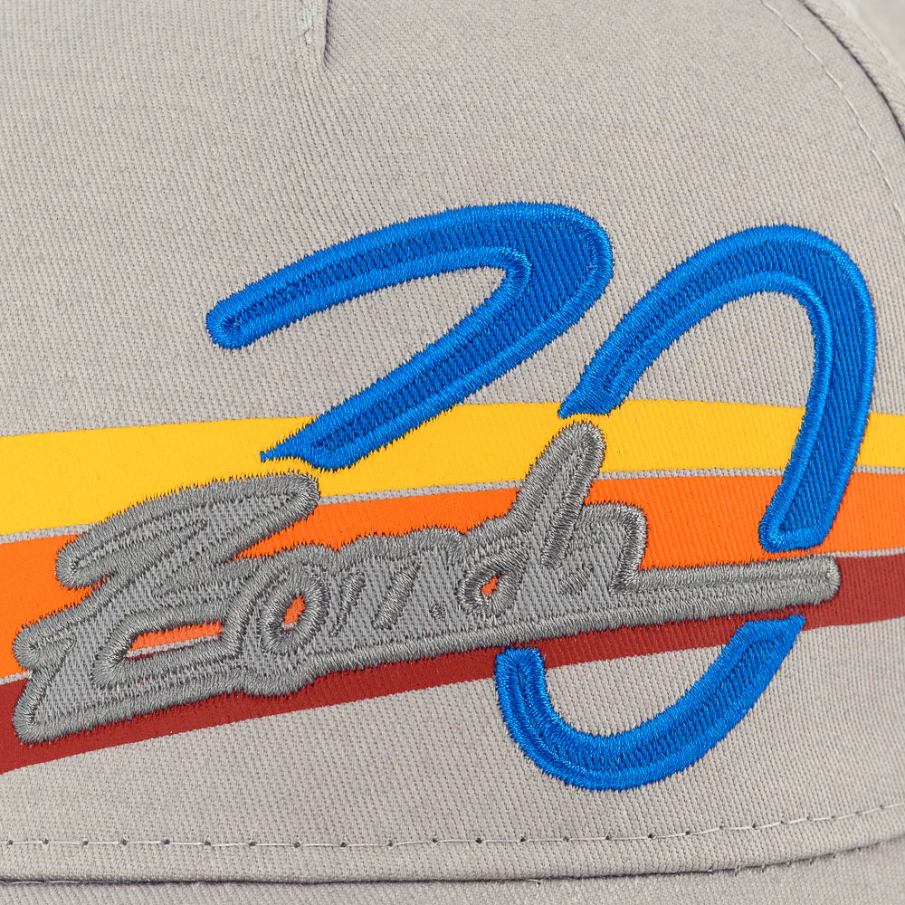 Na tej czapce główną rolę odgrywa jubileuszowe logo Zonda 20th Anniversary. Kolory pasków nawiązują do charakterystycznych lakierów używanych na samochodach przez ostatnie 20 lat: Geneva Yellow, Dubai Red oraz Orange.