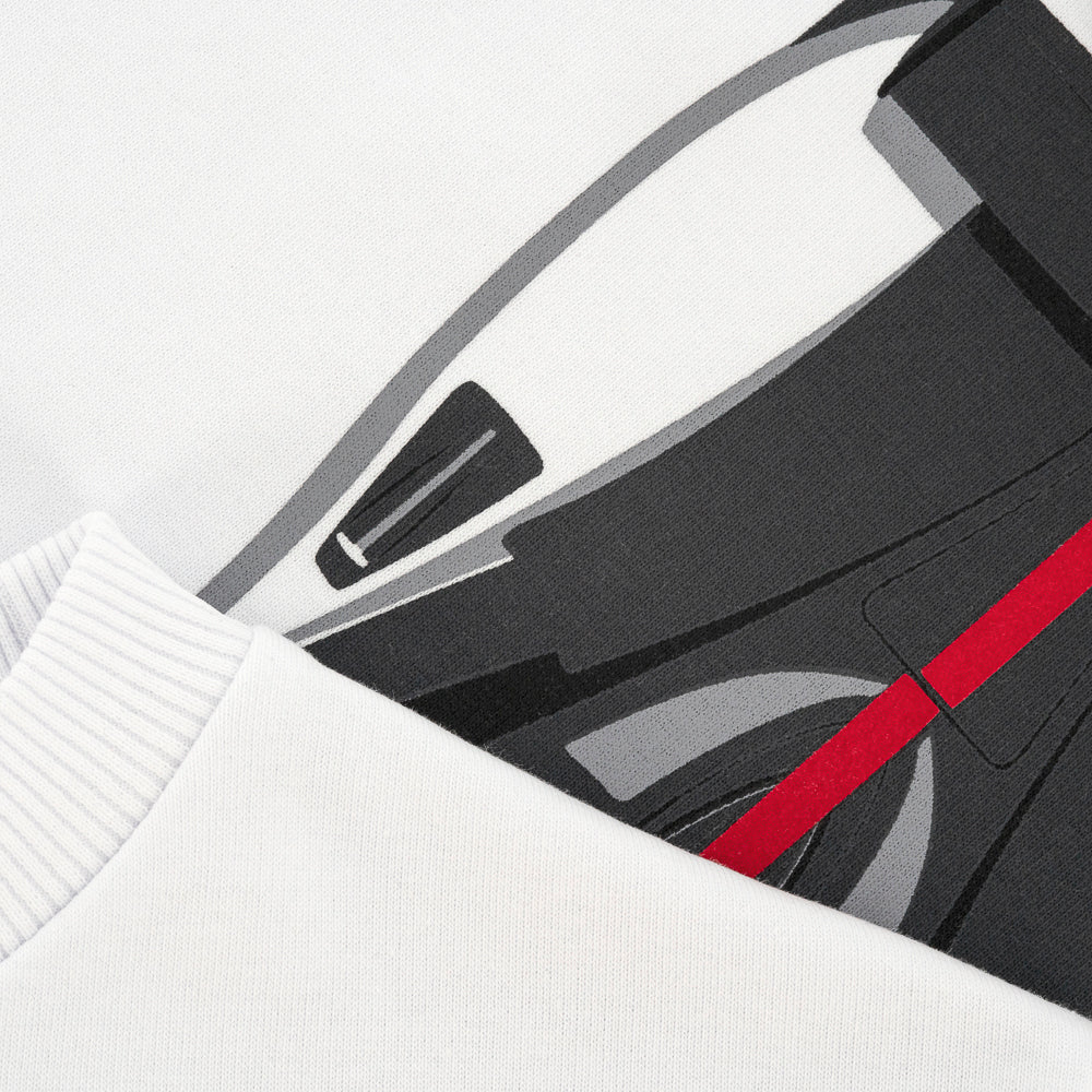 Na plecach tej bluzy ukryto wizerunek jednej z najbardziej rozpoznawalnych Zond – Zondy Cinque, wyróżniającej się swoimi charakterystycznymi barwami: bielą, czerwienią i czernią.
