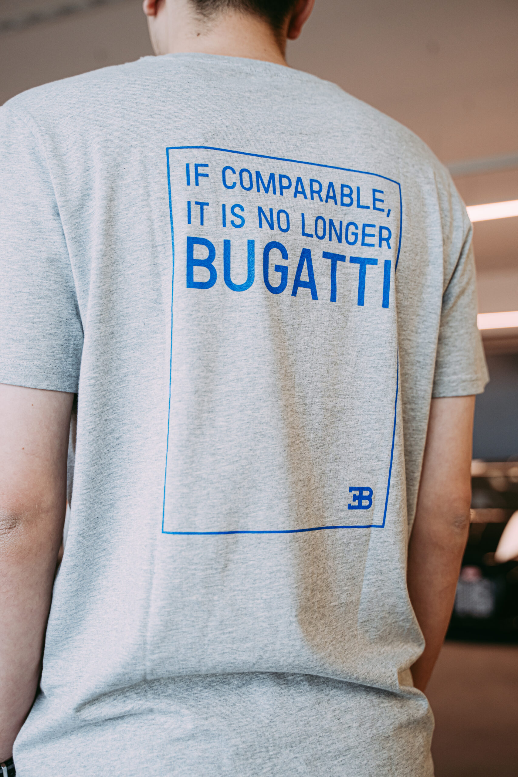 Styl i dziedzictwo w jednym. Ta koszulka z krótkim rękawem, wykonana w 100% z organicznej bawełny, prezentuje ikoniczne logo Bugatti z przodu oraz legendarny cytat Ettore Bugattiego na plecach.