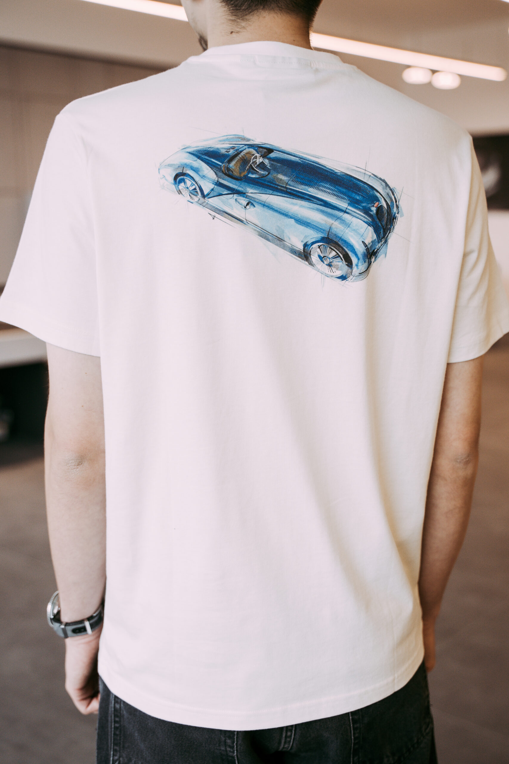 Styl, elegancja i pasja do motoryzacji. Ta koszulka z krótkim rękawem prezentuje na przodzie logo Bugatti, a na plecach wyróżnia się efektownym szkicem legendarnego modelu Type 57. To doskonałe połączenie klasycznego wzornictwa i sportowego ducha marki.