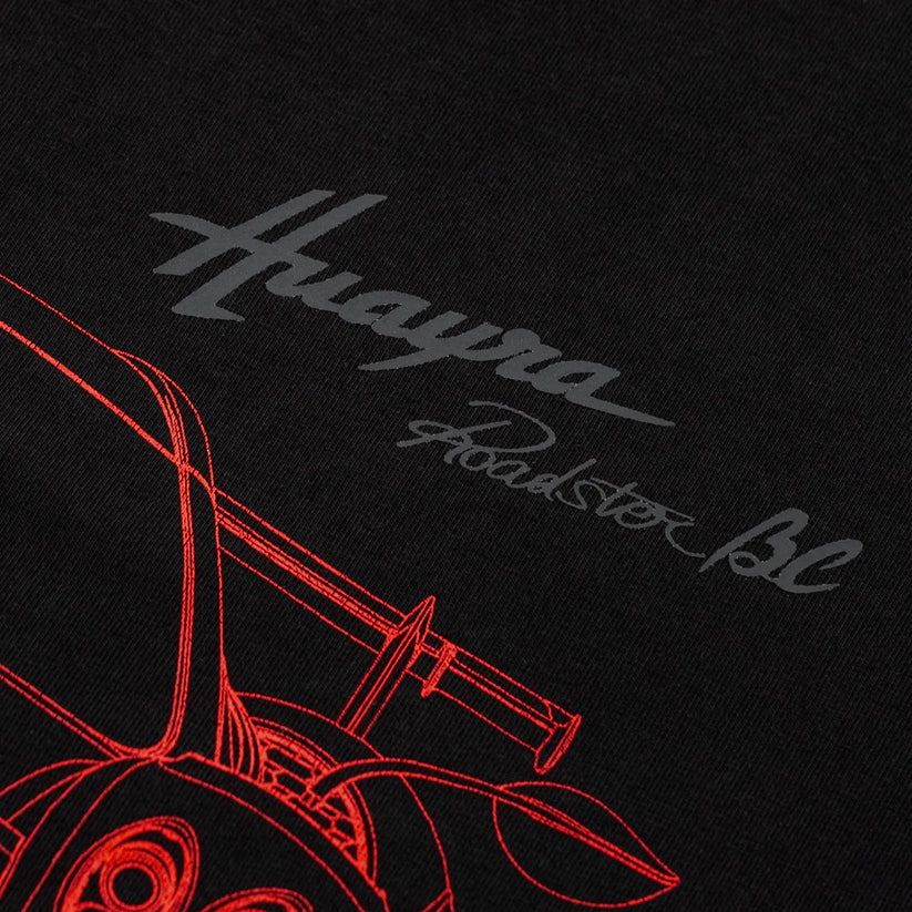 Wykonana z 95% wysokogatunkowej bawełny typu jersey, zapewnia maksymalny komfort i trwałość. Z tyłu, przy kołnierzyku, znajduje się eliptyczne logo Pagani, a na lewej piersi – nadruk z logo samochodu. Całość dopełnia tłoczona metalowa plakietka umieszczona u dołu koszulki.