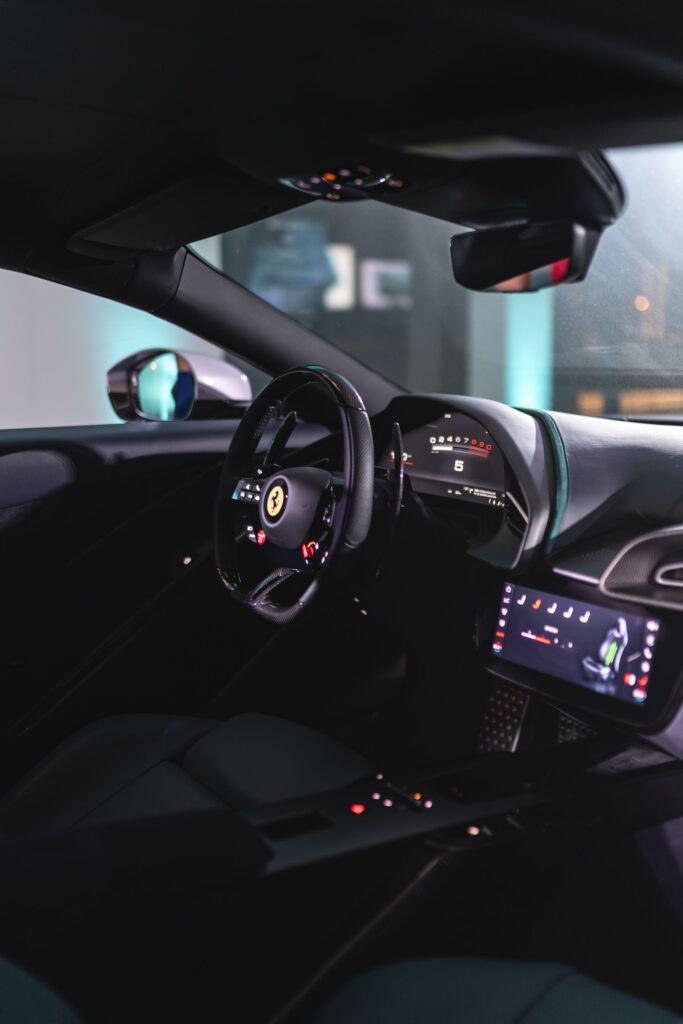 Nie mniej imponujące jest wnętrze. Kabina Amalfiego została zaprojektowana tak, by kierowca i pasażer mogli w pełni cieszyć się podróżą. Zwłaszcza nowa kierownica z dopracowanymi przyciskami oraz przeprojektowany przycisk startowy sprawiają, że każda chwila za kierownicą staje się wyjątkowym doświadczeniem. Minimalistyczne linie i technologia przyszłości idą tu w parze z dbałością o detale, która od dekad jest znakiem rozpoznawczym Ferrari.